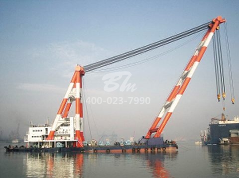 浮吊是船載吊機(jī),淺易浮吊是在平板駁船上安置木扒桿,大型浮吊由鋼構(gòu)件組裝,起吊重量達(dá)5000t,外洋有的浮吊起重本領(lǐng)還要高。